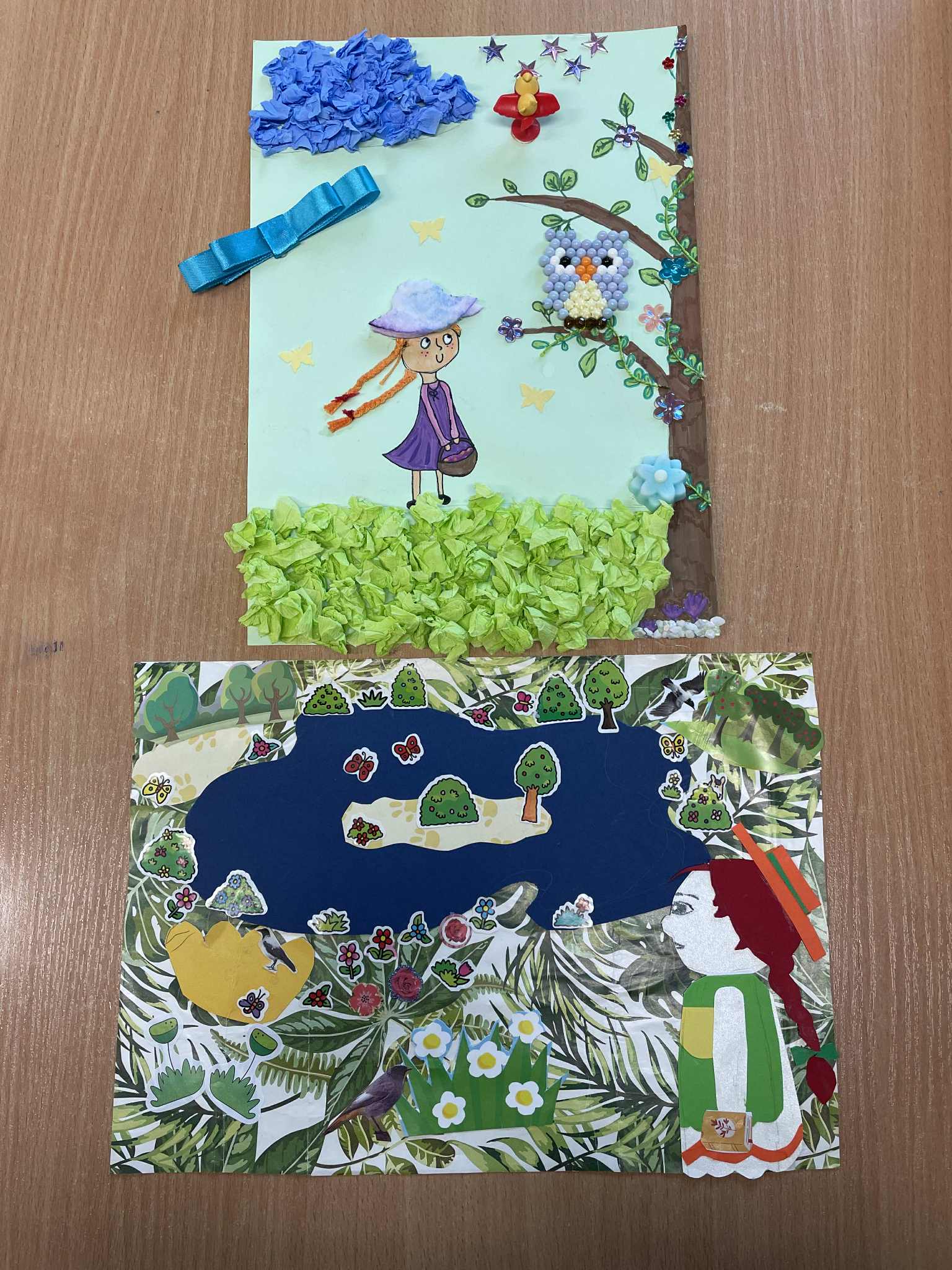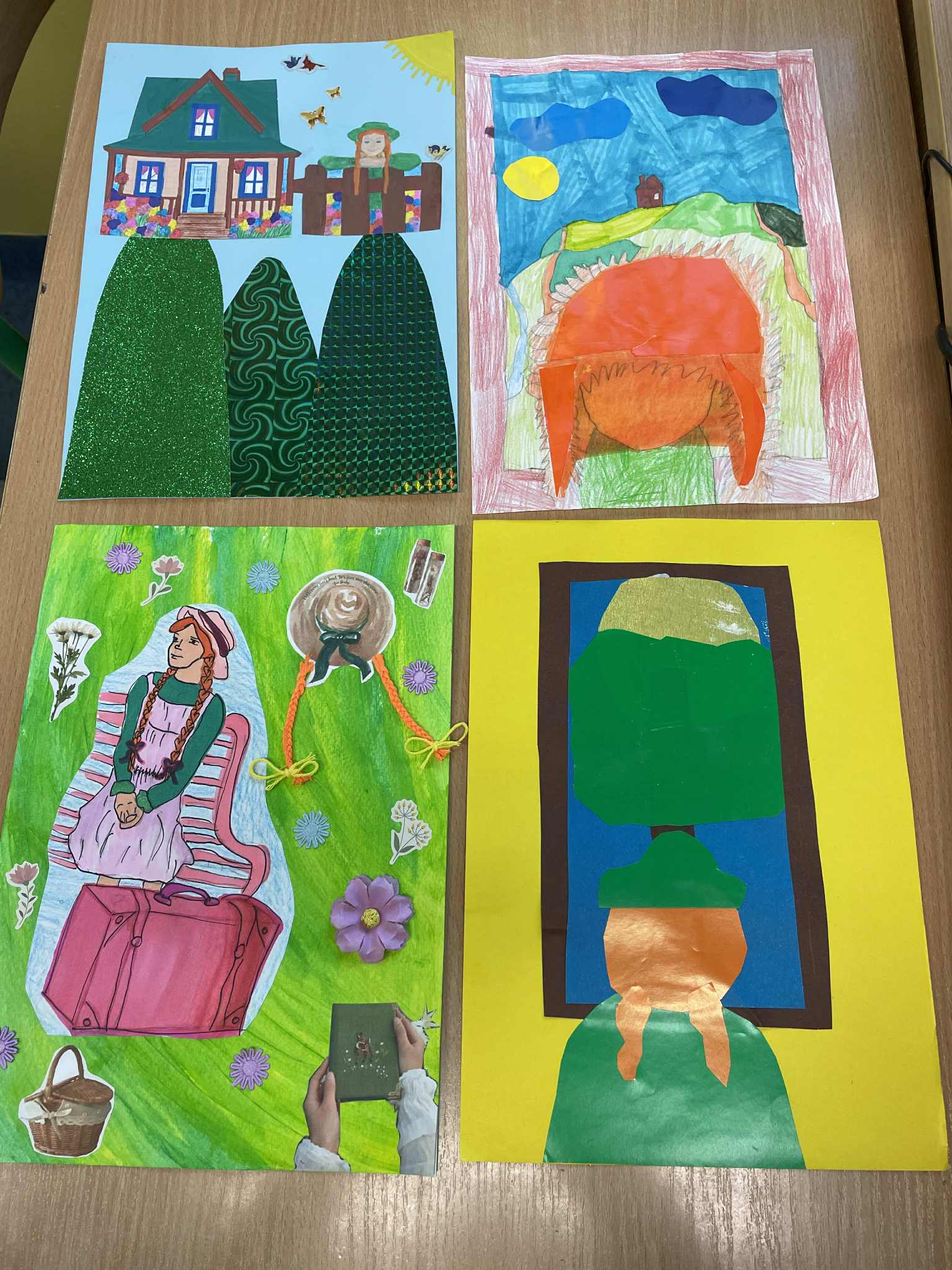 Świat Ani S. Klasa 5b na podsumowanie lektury pt. „Ania z Zielonego Wzgórza” wykonała kolaż, w którym miała za zadanie zawrzeć charakterystyczne elementy kojarzące się z główną bohaterką. Rude warkocze, piegi, bufiaste rękawy sukienki, okno, broszka Maryli czy tabliczka, która wylądowała na głowie Gilberta albo samo Zielone Wzgórze - każdy z uczniów wybrał to, co mu najbardziej utkwiło w pamięci. Prace wyszły rewelacyjne.