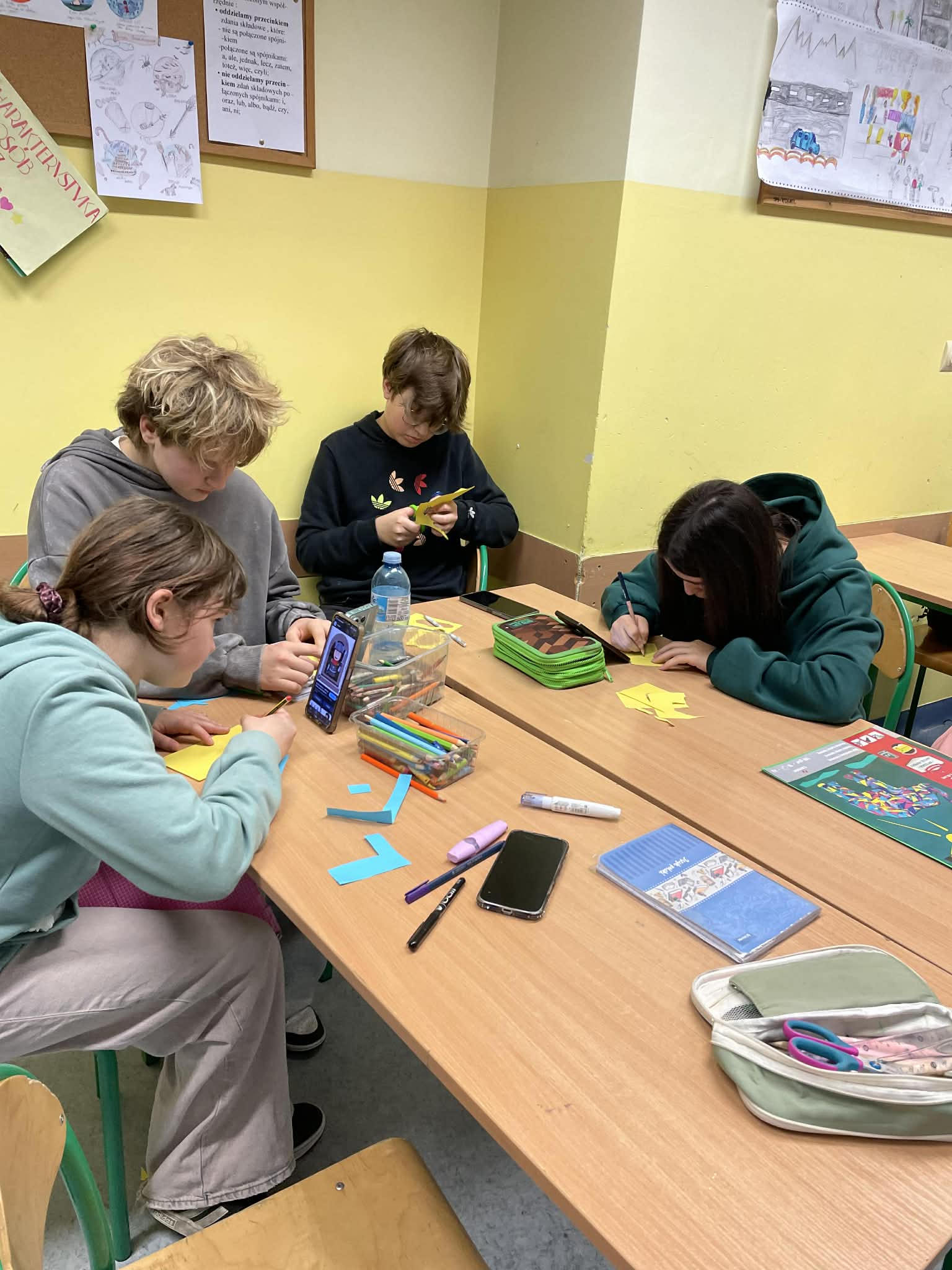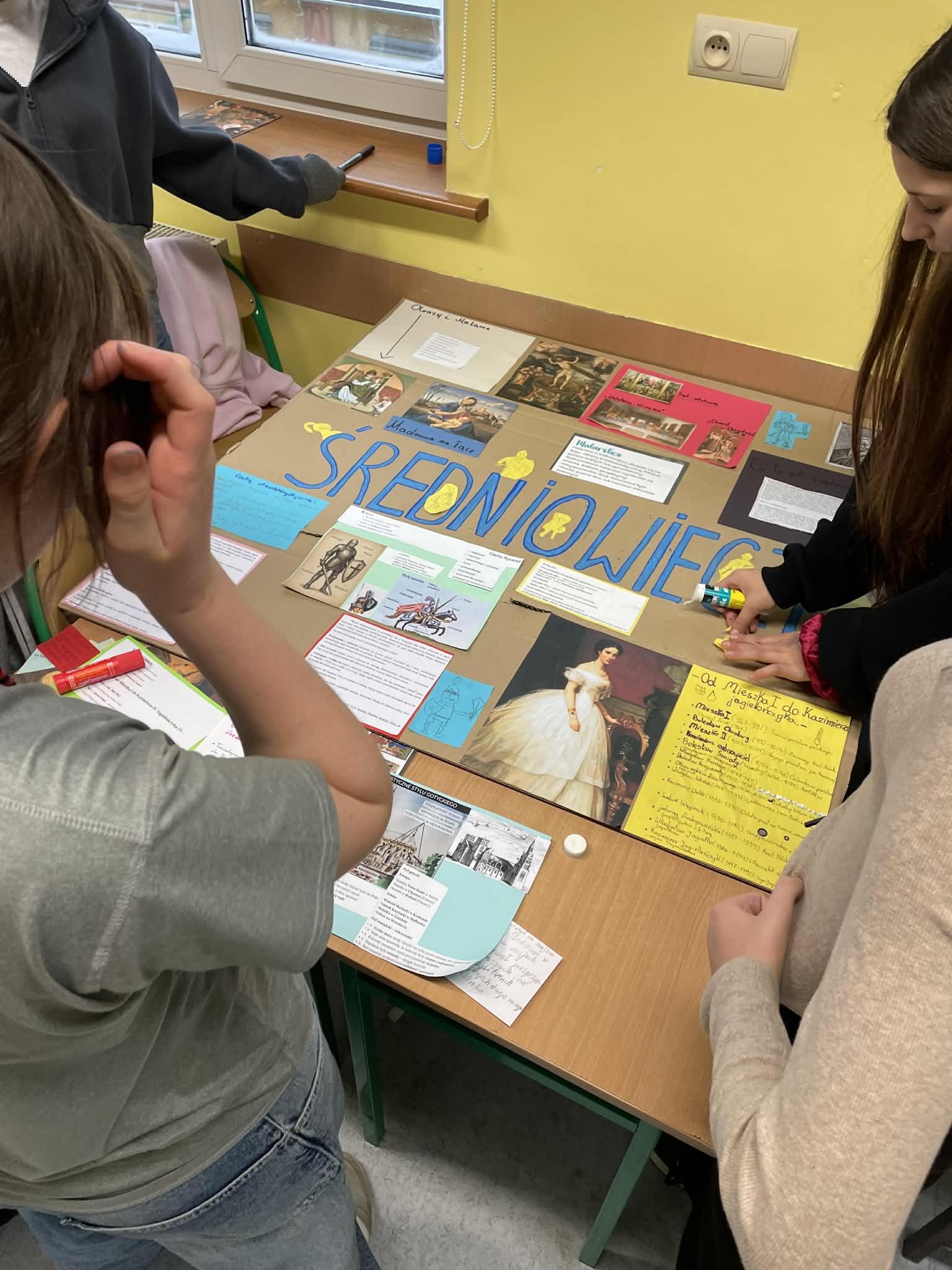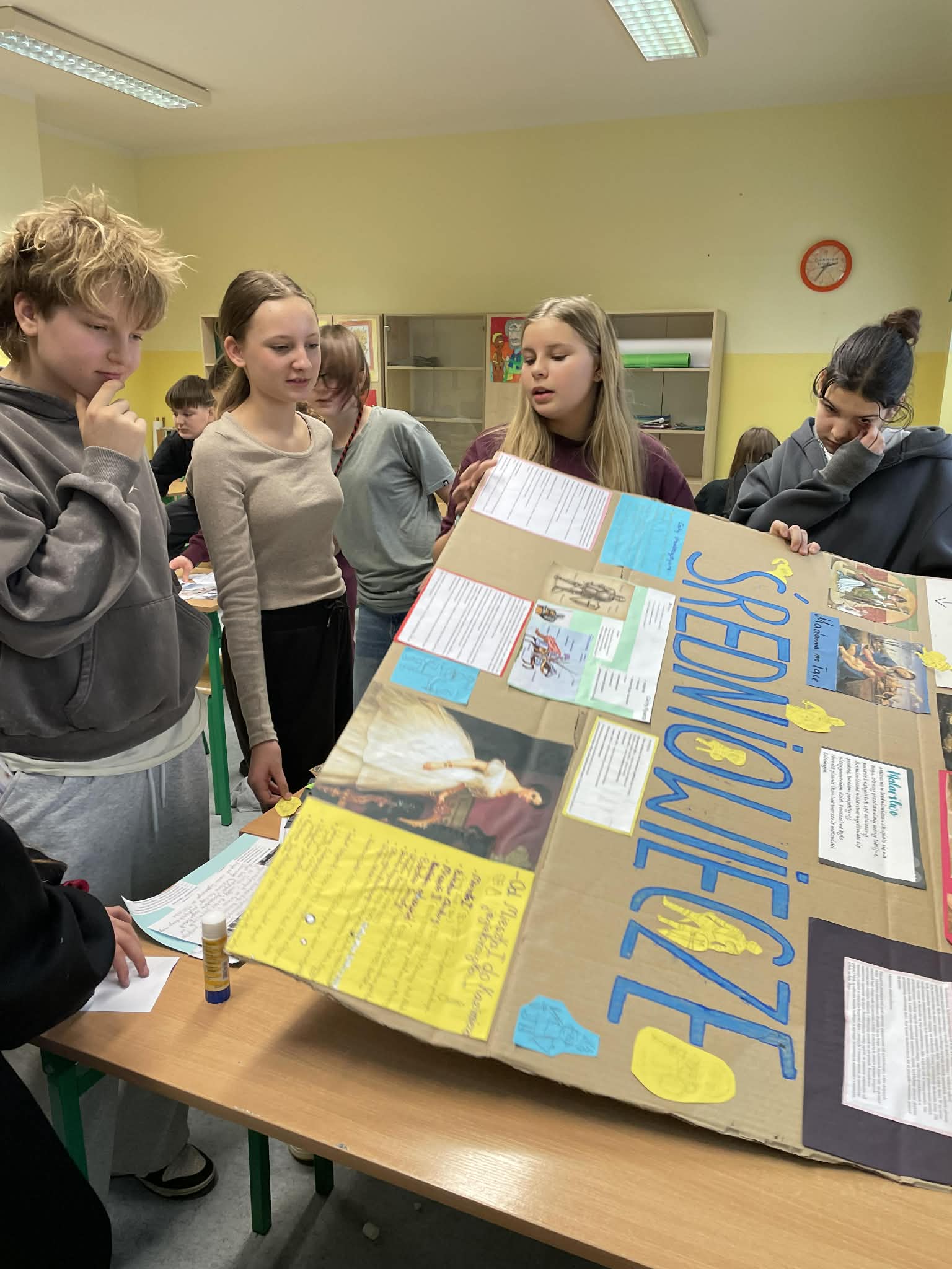 Nauka pracy w grupie w klasie 6c Praca w grupie (zespołowa) to wspólne realizowanie zadań, które oparte jest na współpracy, podziale ról oraz wymianie kompetencji w celu osiągnięcia lepszych wyników niż indywidualnie. Zwiększa ona efektywność, kreatywność i wsparcie, ale wymaga jasnej komunikacji, zaufania i wspólnego celu. Skuteczne zespoły cechuje współodpowiedzialność i konstruktywne rozwiązywanie konfliktów. Klasa 6c na podsumowanie tematu o średniowieczu dostała wskazówki, co powinno znaleźć się na makiecie. Uczniowie podzieleni na 3 grupy mieli podsumować wszystkie informacje, które wcześniej opracowali. Wniosek: burza mózgów, kreatywność oraz współpraca w grupie daje duże szanse na szybsze wykonanie zadania.