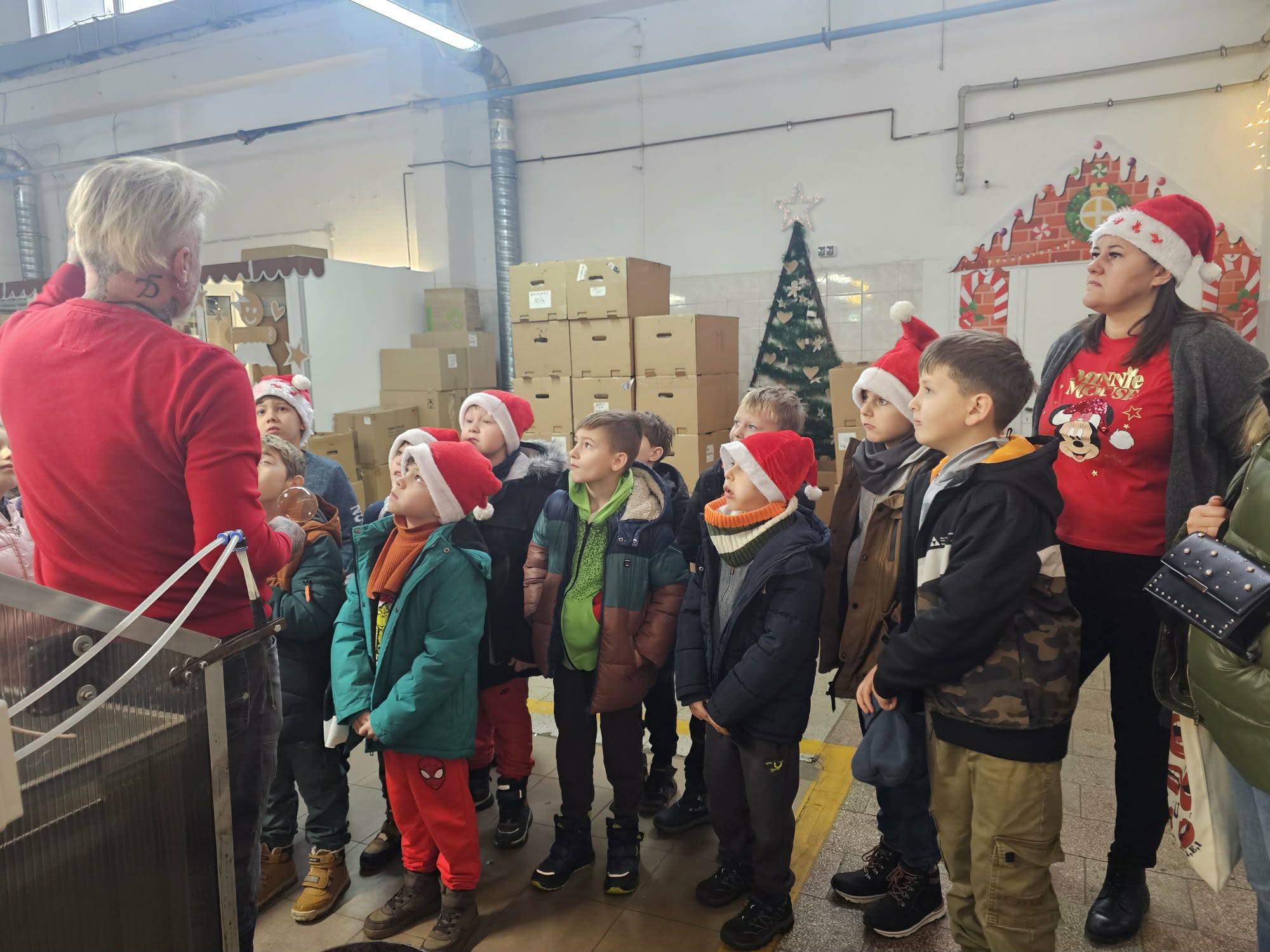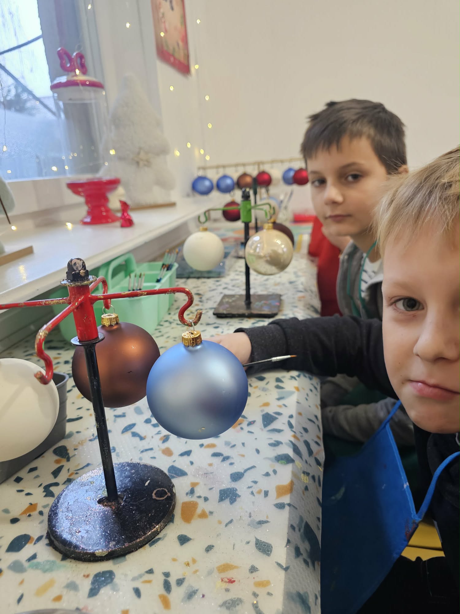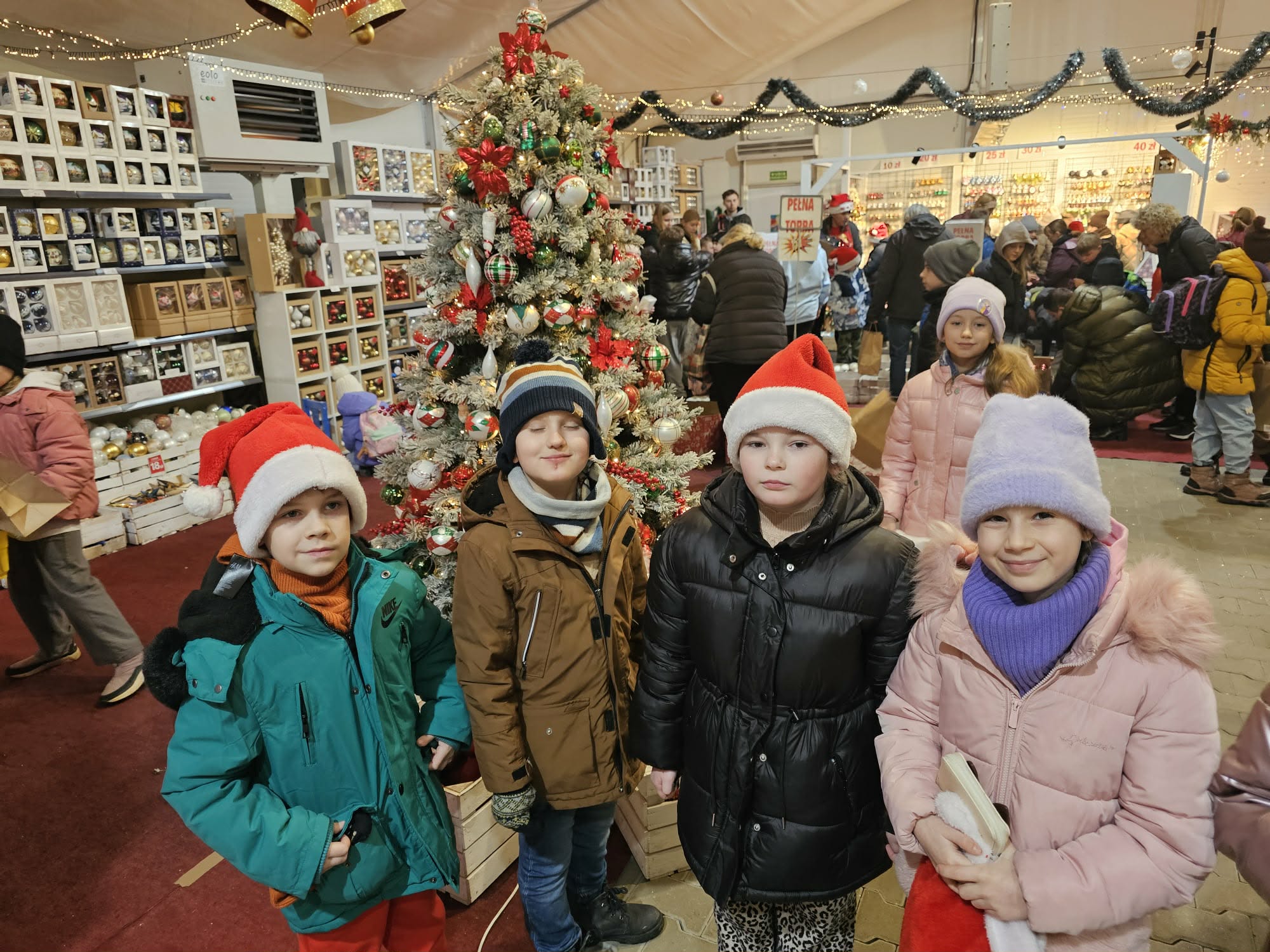WYCIECZKA KLASY 2A DO FABRYKI BOMBEK W ZŁOTORYI W piątek 5 grudnia kl. 2a przeniosła się do prawdziwej krainy świątecznych cudów. Uczniowie odwiedzili fabrykę bombek w Złotoryi, gdzie z bliska zobaczyli, jak powstają jedne z najpiękniejszych ozdób choinkowych. Pod czujnym okiem przewodnika dzieci zwiedziły takie hale jak: dmuchalnia, srebrzalnia, dekoratornia i wzorcownia, w których mogły obserwować cały proces tworzenia bombki. Największe wrażenie zrobiła dekoratornia, gdzie powstają prawdziwe małe dzieła sztuki m.in. bałwanki, cukierki, samochody i wiele innych świątecznych kształtów. Na koniec wizyty drugoklasiści zostali zaproszeni na warsztaty zdobienia bombek, co sprawiło im mnóstwo radości i zabawy. Po warsztatach uczniowie odwiedzili sklepik i zakupili pamiątki. Była to również doskonała lekcja matematyki w praktyce, podczas której dzieci samodzielnie liczyły pieniądze, aby móc zrobić zakupy. Wycieczka okazała się niezapomnianym przeżyciem, które połączyło dobrą zabawę z nauką. Dzieci wróciły do szkoły pełne wrażeń, nowych doświadczeń i świątecznego nastroju.